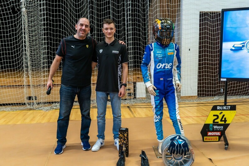 Óriási taps fogadta a diákok és a tanárok által megtöltött tornateremben a RODIN Motorsport pilótáját, aki az előző napot még Olaszországban töltötte a versenysisakjának elkészítése kapcsán. Vidámsága, fiatal kora ellenére maximális profizmusa és végtelen türelme a gyerekek felé már az első pillanatban érződött, amikor is az aulába belépve autogramvadász alsósokkal találta szembe magát. A kötetlen, oldott hangulatú beszélgetés életútjának kezdeti szakaszától indult, elmesélte, hogy 2 évesen már elektromos kisautót vezetett egy játszóházban.